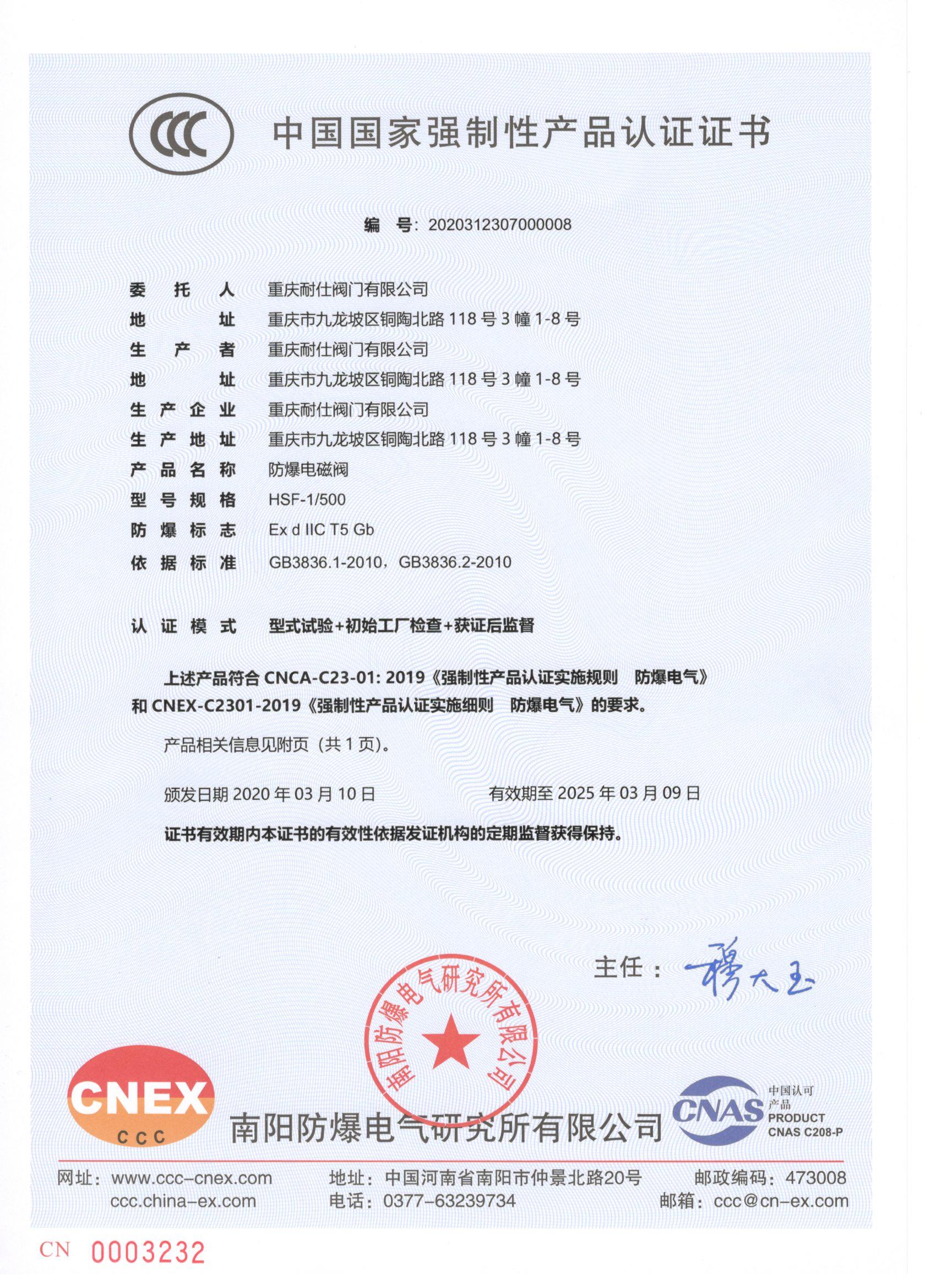 重慶耐仕閥門有限公司是專業生產電磁式燃氣緊急切斷閥、燃氣電磁閥、防爆電磁閥、燃氣緊急切斷電磁閥、高壓電磁閥、超高壓電磁閥、高溫電磁閥、超高溫電磁閥、低溫電磁閥、超低溫電磁閥、低溫截止閥、管道燃氣自閉閥的生產廠家,是一家集研發、設計、生產銷售、安裝調試、技術交流為一體的專業制造企業,公司研制的凹凸式活塞環電磁閥屬國內領先技術。公司注冊資金3000萬,2007年成立以來先后取得了ISO9001:2015質量體系證書、多項專利技術,防爆合格證、特種設備制造許可證、全國工業產品生產許可證、國家強制性產品認證、高新技術企業等證書。