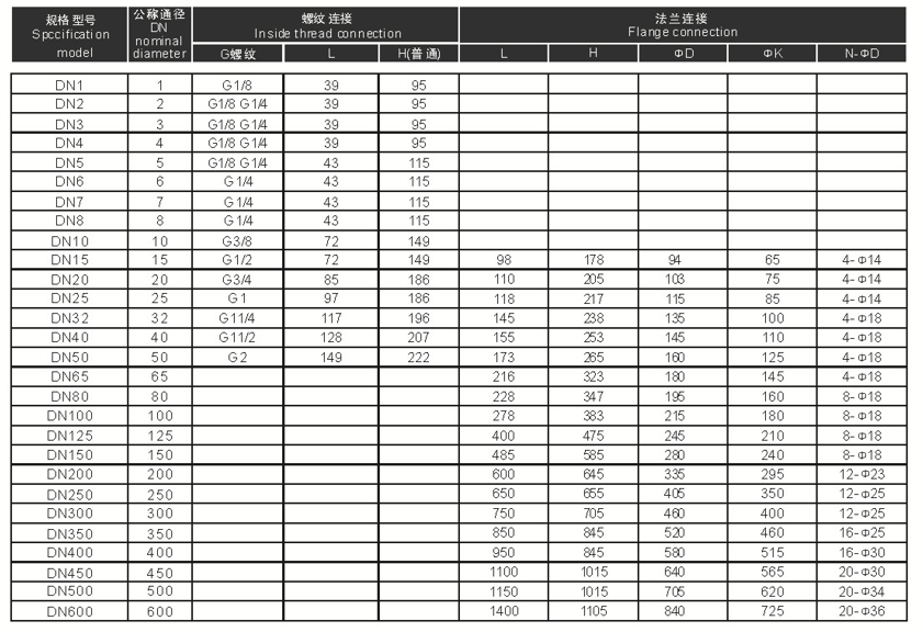 通徑范圍:DN0.1-600mm