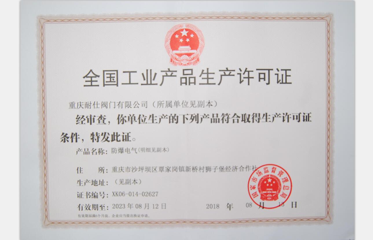 全國工業產品生產許可證書